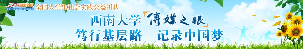 西南大學(xué)“傳媒之眼”社會(huì)實(shí)踐隊(duì)由新聞傳媒學(xué)院團(tuán)委老師李海峰、范曦帶隊(duì),8名研究生、19名本科生組成。團(tuán)隊(duì)圍繞“篤行基層路,記錄中國(guó)夢(mèng)”的主題,自7月3日開(kāi)始,從建設(shè)生態(tài)北碚、“百姓中國(guó)夢(mèng)”主題宣講、“幸福重慶”人文記錄、“山城百姓”社會(huì)調(diào)查四個(gè)方面開(kāi)展活動(dòng)。團(tuán)隊(duì)已經(jīng)在歇馬鎮(zhèn)碚青路中心廣場(chǎng)舉行了文藝匯演,并給群眾帶來(lái)了各種各樣的避暑藥品;到歇馬污水處理廠,了解當(dāng)?shù)厣a(chǎn)生活污水的處理;到重慶歇馬機(jī)械曲軸有限公司,宣傳“節(jié)能生產(chǎn)”理念,在員工中開(kāi)展環(huán)保培訓(xùn),強(qiáng)調(diào)可持續(xù)生產(chǎn)和發(fā)展。