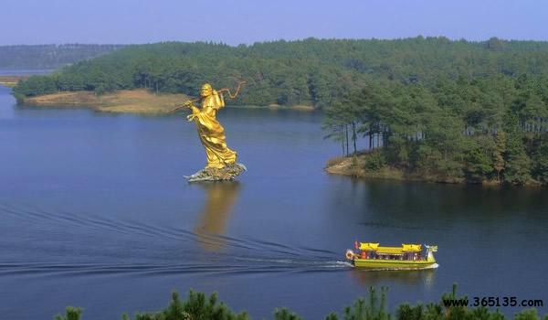 岱山湖:位于肥東縣與全椒縣交界處,東距合肥市區(qū)57km,西距江蘇省城南京市只有96km。岱山湖地屬亞熱帶氣候,溫暖濕潤(rùn),年平均氣溫15.7攝氏度,冬暖夏涼,四面青山環(huán)繞,山水交融,平均水深20米,最深處46米。水面有寬有窄,湖邊有灣有港,自成體系,具有開(kāi)展各類水上項(xiàng)目的理想環(huán)境,湖邊山區(qū)森林覆蓋率90%以上,有400多種植物。岱山湖以其獨(dú)特的湖光山色聞名遐爾,“山不高而層巒疊嶂,水不大而氣象萬(wàn)千”,勾畫(huà)出了岱山湖的景色特征。