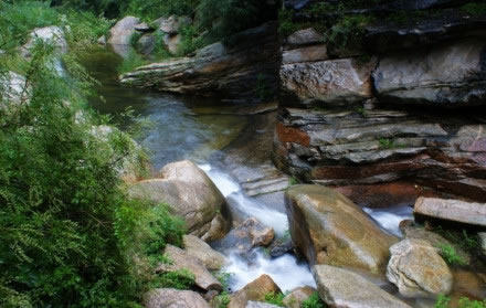 神龍谷八石九潭中第一潭,相傳曾經(jīng)是東海龍王九太子靜心思過之處。它上承天庭之水,下通仙寓瑤池,有神靈之美;精巧靈秀,清澈見底,有天然清秀之美;神龍發(fā)怒,聲似雷鳴,水霧與云霧相連,有險(xiǎn)峻之美;平時(shí)一簾清水飄然而下,有一種神韻之美。