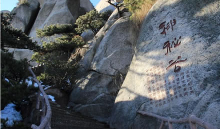 神秘谷,在天池峰南,又稱司元(玄)洞。神秘谷石由龍宮、迷宮、逍遙宮等組成,自龍吟虎嘯崖入口,穿過五指峰,緊傍飛來峰,環(huán)繞銜珠峰,直達(dá)渡仙橋,全長400多米,落差100多米。谷內(nèi)洞上有洞,洞里有洞,有的相連,有的間隔,道家視此地為洞天福地,道書稱之為第十四洞天。舊志稱此洞“空邃可容萬余武,下有水晶巖,直通滄海。后呼為總官洞!