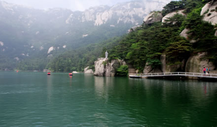 蓬萊島位于花峰左側(cè),蓬萊峰海拔1350米,南眺天池峰,北依天柱峰。蓬萊峰是一單體石壁,西、南、北三面岸陡壁削,向西延伸一百多米處是萬丈深淵。峰頂狹長絕險,縱長百余米,寬僅二、三米。今已修建石級和護(hù)欄。明代李庚有詩:“登躋猶未半,身已在蓬萊”,故稱蓬萊峰。登山峰頂可遠(yuǎn)眺湖北英山、安徽霍山、金寨。