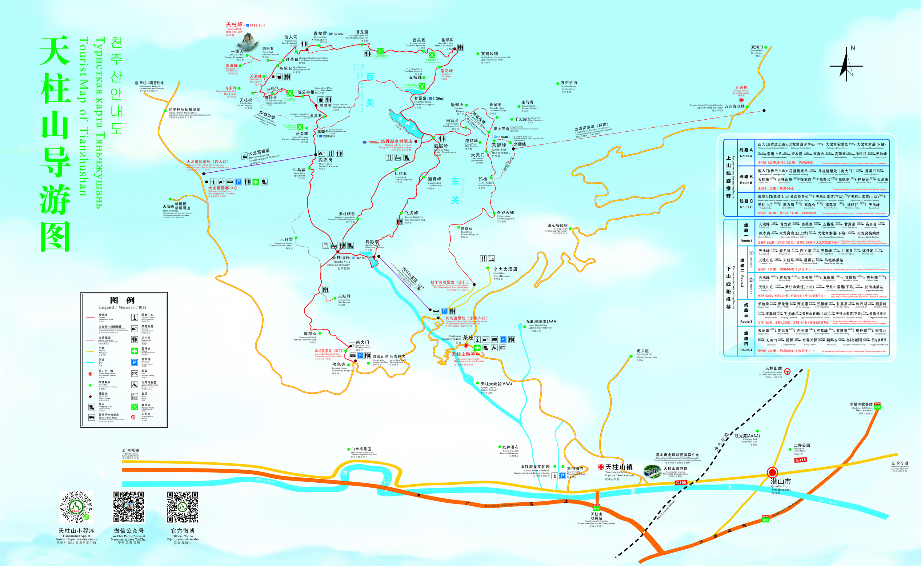 1979年~1987年,梅城、三祖寺、茶莊、馬祖、青龍澗等已建成為經(jīng)濟(jì)、文化、行政管理及佛教、游覽活動的中心。截至20世紀(jì)末,天柱山國家級風(fēng)景名勝區(qū)占地面積為82.46平方公里,先后建設(shè)虎頭崖、九井河、三祖寺、龍?zhí)逗拥劝舜缶皡^(qū)和一個茶莊中心接待站。已經(jīng)命名的景點,有46峰、17嶺、7崗、18崖、14巖、7關(guān)、22洞、4沖、6源、17泉、8瀑、1川、3溪、5澗、13河、3潭、16井、6池、3湖等。