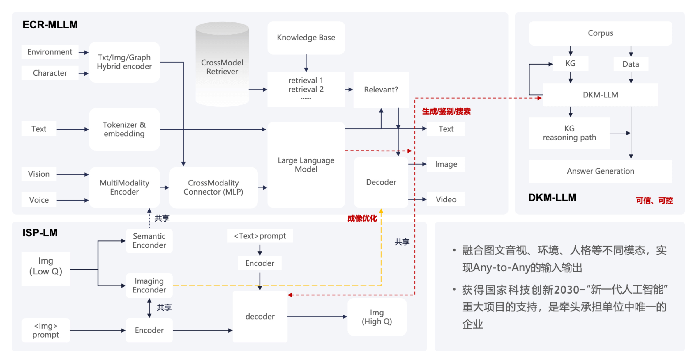 “白澤”是人民中科與傳播內(nèi)容認知全國重點實驗室聯(lián)合發(fā)布的國內(nèi)首個跨模態(tài)模型,在圖文音視等模態(tài)之外還創(chuàng)造性地引入了社會、人格、環(huán)境、政務(wù)等模態(tài),并突出強化了主流價值觀、內(nèi)容安全、信創(chuàng)算力等可信約束機制?!鞍诐伞比〉弥醒刖W(wǎng)信辦的互聯(lián)網(wǎng)信息服務(wù)算法、生成式人工智能服務(wù)等備案,在一個基礎(chǔ)模型上實現(xiàn)了跨模態(tài)的理解、搜索和生成的互相增強,已在認知對抗、數(shù)字政務(wù)、輔助決策等領(lǐng)域?qū)崿F(xiàn)了規(guī)模化應(yīng)用。