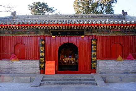 三山庵是八大處的第三處寺院,創(chuàng)建于金天德三年(1151年),山門面朝東北,是一座四合院落。山門殿為三開間,左右各開角門一扇;正殿五楹并配有耳房兩間;兩配殿門戶相對分列于正殿兩廂。山門殿懸額“三山庵”;垂聯(lián)“翰墨因緣舊;煙云供養(yǎng)宜”;正殿懸額“是大世界”,聯(lián)題:“慈目靜心法相;和風甘雨祥云”。此院額聯(lián)皆為今人手筆。