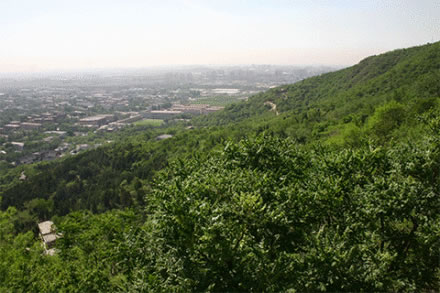 西出京城,舉目眺望,就會看見小西山南端有三座突兀的山峰。南為虎頭山,北為青龍山,中間的是翠微山,三山形如三角,呈鼎足之勢。三山又像一把圈椅,翠微山(464米)為靠背,青龍山(438米)、虎頭山(387米)為左右扶手。