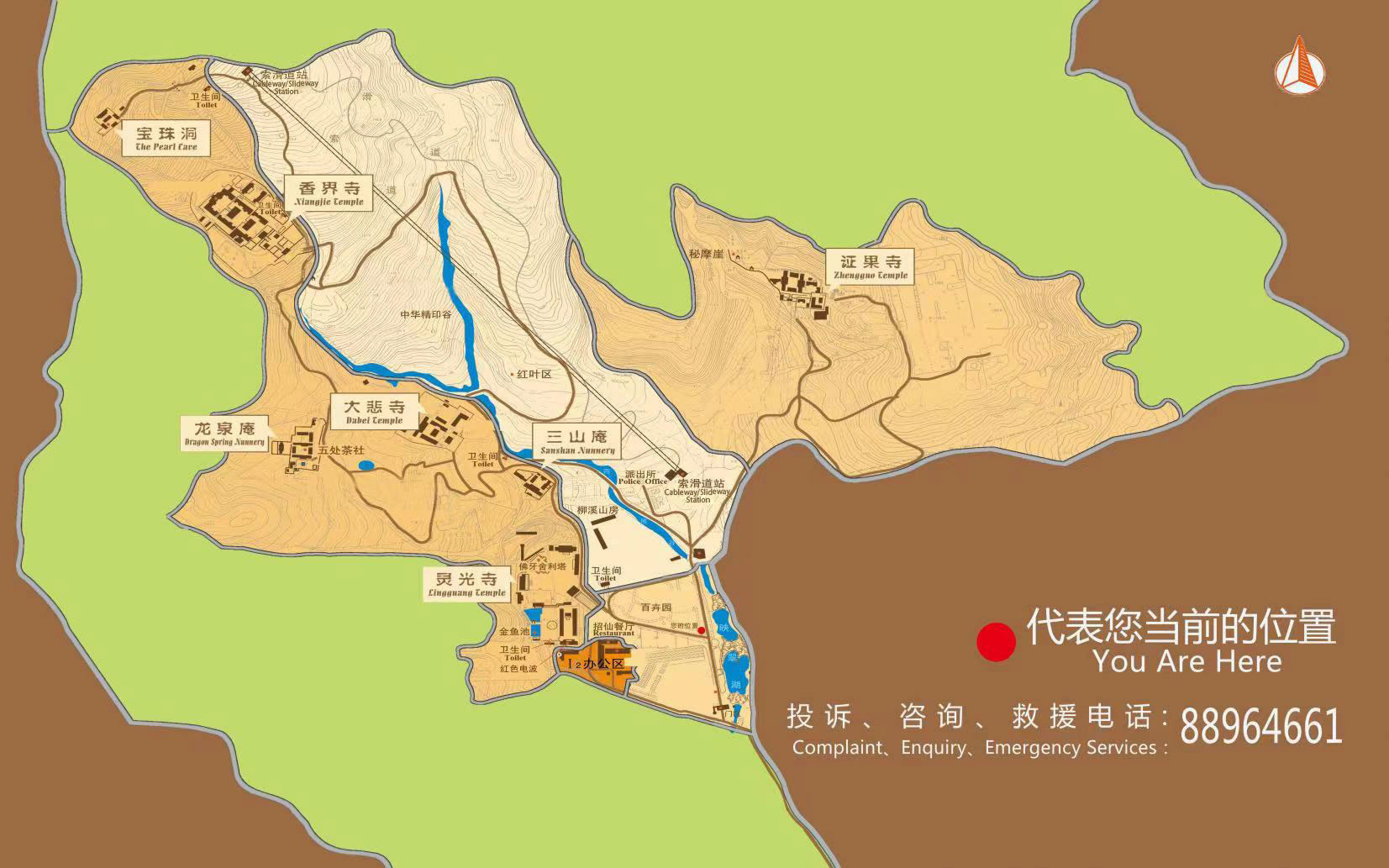 證果寺坐北朝南,全寺殿宇分為三組,中路由南向北分別為山門殿、天王殿和三世佛殿。東部是方丈院;西部是秘魔崖和其他附屬建筑。寺中一株古黃連木樹齡600年以上,為京城所獨有。證果寺坐北朝南有二碑,山門,位于盧師山腰。山門石階數(shù)十級。階下豎之上石額鐫有“古剎證果寺”字樣,為明英宗御筆。山門左側有一深潭,名為青龍?zhí)叮瑐髡f為青龍出沒之處。山門以北天王殿,再北為大雄寶殿。