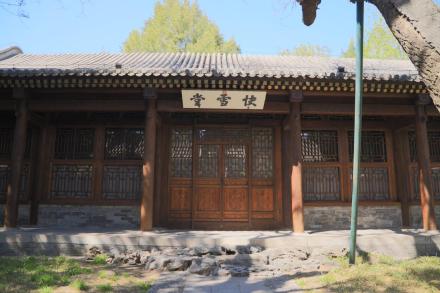 快雪堂始建于乾隆四十四年(1775年),院內(nèi)還有澄觀堂、浴蘭軒兩座大殿。四周由彩繪游廊連接,快雪堂東西兩側(cè)的游廊內(nèi)嵌有晉代至元代二十位書(shū)法家八十篇墨跡石刻四十八方,其中王羲之《快雪時(shí)晴帖》與乾隆皇帝所作的《快雪堂記》最為著名。