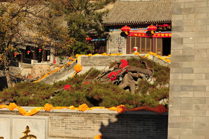 延壽寺 延壽寺,位于昌平區(qū)延壽鎮(zhèn)黑山寨村北兩公里,為三進(jìn)院落寺院,正門為三開間的寺院大門,莊重恢宏進(jìn)入寺院大門,抬眼上望,一座漢白玉筑成的巨大“佛”字迎著朝陽,矗立在山崗上,在天空映襯下,顯得分外耀眼奪目。菩薩殿是延壽寺的第二重殿,面闊3間,進(jìn)深3間,殿內(nèi)供奉著漢白玉雕刻的釋迦牟尼像和碧玉觀音菩薩像。碧玉觀音菩薩像高1.2米,國內(nèi)少有,價(jià)值連城。大雄寶殿是延壽寺第三重殿,也是寺內(nèi)的主體建筑,殿內(nèi)供奉三尊佛,被稱作三世佛,使延壽寺成為佛、法、僧三寶俱全的寺院。 |