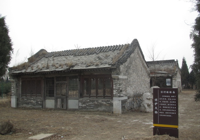 沿村娘娘廟 沿村娘娘廟始建于明代,清代中期重修,2011年在拆除村辦企業(yè)大棚后顯露出來。依地勢坐南朝北。原為四合式,由于時(shí)代的變遷,周圍建筑已不存,現(xiàn)僅存前、后兩進(jìn)殿宇,前殿為硬山筒瓦卷棚頂,前后出廊;后殿為硬山筒瓦大式,前出廊。兩進(jìn)殿均為石望板頂,廊心墻處為軟心,梁檁彩繪及壁畫仍清晰可見。