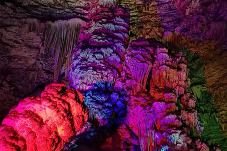 云水洞 云水洞位于上方山國家森林公園內(nèi),洞口海拔530米,為串珠狀近水平洞穴,是北京開發(fā)最早的溶洞。已探測的洞道長度613米,有7個(gè)大廳、108個(gè)自然形成的巖溶景觀。其中最著名的景觀“擎天柱”發(fā)育于第2洞廳,是一個(gè)高38米、直徑8米的巨型石筍,是全國石筍之冠。石筍兩側(cè),有一排厚薄和長短各異的石鐘乳,可敲打演奏出許多優(yōu)美動(dòng)聽的樂曲。