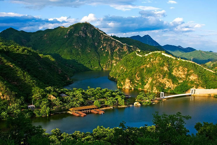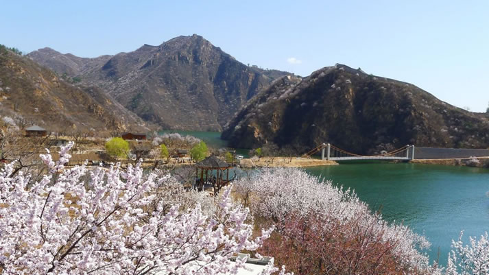 黃花城水長城 黃花城水長城位于九渡河鎮(zhèn)境內(nèi),距北京市區(qū)65公里,是以奇而著稱,融山川、碧水、古長城為一體的旅游休閑勝地。而這里的“ 三絕景 ”更是引人入勝,嘆為觀止。 “一絕”建于明永樂年間的長城盤旋于山脊之上,環(huán)繞在灝明湖畔,景色秀美壯觀。 “二絕”湖水將長城自然斷開,形成長城戲水、水沒長城的奇特景觀。 “三絕”明代板栗園,古樹盤根錯節(jié),形態(tài)各異。那巨龍戲珠之軀和撐掩蒼天之冠,令人贊不絕口。 沿古道、過木橋、涉小溪、跨怪石,上行可達黑龍?zhí)。景區(qū)還有龍尾洞、紫翠峰、醉女山、石浪谷、情人峰、三珠連潭等自然景觀。 地名由來 因鎮(zhèn)域中部最大村名九渡河而得名。 地方特產(chǎn) 九渡河鎮(zhèn)為懷柔區(qū)板栗、核桃生產(chǎn)基地之一,另有梨、蘋果、柿子、紅果等。 |