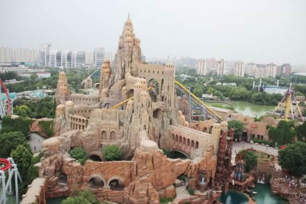 水晶圣城:60余米高聳的亞特蘭蒂斯水晶圣城被賦予開門見山、主導全局的功能,是北京歡樂谷的標志性景觀,也是公園的制高點。 亞特蘭蒂斯人的水晶圣城不但是水晶的開采加工中心,同時也是將智慧與能量輸入水晶并不斷積累的寶庫。