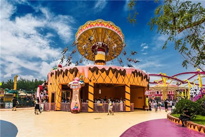 歡樂谷第四期在原螞蟻王國的區(qū)域重建,13個游樂項目分別用不同的甜品造型筑造包裝。
