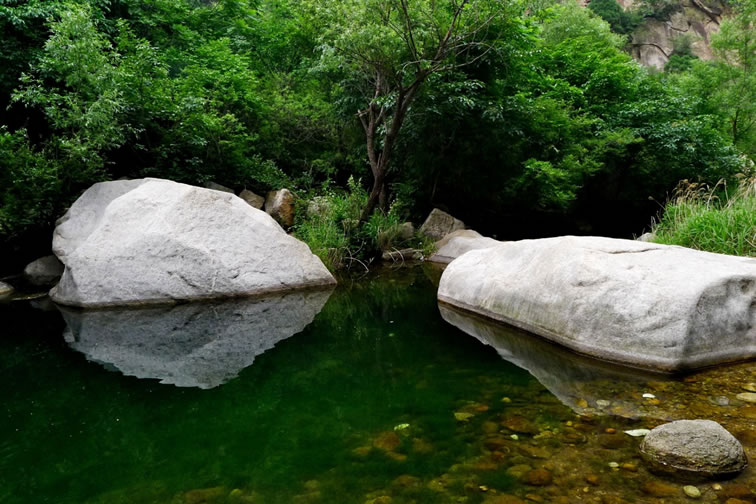 黑龍?zhí)毒皡^(qū) 黑龍?zhí)毒皡^(qū)位于石城鎮(zhèn)鹿皮關,景區(qū)是一條峽谷走廊,全長4公里,總面積9平方公里。峽谷俗稱轱轆峪,蜿蜒曲折,兩壁陡峭奇聳,峰巒疊嶂。景區(qū)共有懸潭、沉潭、落雁潭、通天瀑、平沙潭、曲潭、滴水潭、葦潭、三疊潭、龍戲潭、珍珠串、三潭疊瀑、無底潭、黑龍真潭以及龍門口、龍劈石、刺猬石等30多個景觀,如顆顆明珠鑲嵌在峽谷中。