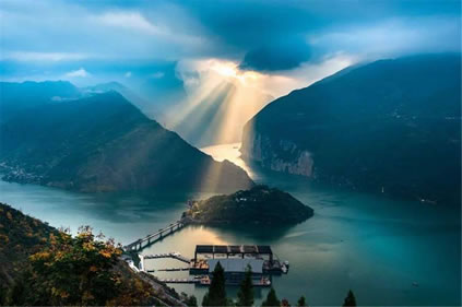 瞿塘峽又名夔峽。古時(shí)稱廣溪峽、巴峽、西陵峽等,為長(zhǎng)江三峽第一峽。瞿塘峽西起奉節(jié)白帝城,東至巫山大溪鎮(zhèn),名勝古跡最為豐富。峽谷陡峭,兩岸雙峰欲合,斷巖千尺,古木蒼藤,好似繡幕高懸;峽中江水排山倒海,勢(shì)如山崩,聲震數(shù)里。2008年,三峽大壩蓄水至海拔175米后,瞿塘峽已是高峽平湖,兩岸險(xiǎn)峰峻石依舊,既有滿山紅葉似彩霞的絢麗多姿,又有碧水蕩漾、煙波浩渺的靜美壯闊。