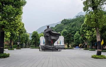 忠義廣場(chǎng)位于白帝山北側(cè),占地7000平方米。廣場(chǎng)中央是一尊諸葛亮鑄像,鑄像總高7.9米,人像高5米。諸葛亮手握羽扇,衣襟飄拂。鑄像后面是用漢白玉雕刻制作的《出師表》碑,碑長(zhǎng)16米、高4米、厚2米,正面書前《出師表》,背面書后《出師表》。