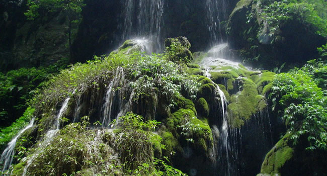 大大小小的泉水順著苔鮮爭相跳躍而下,在陽光的投射下熠熠生輝,讓你想起古人所云:“大珠小珠落玉盤!比嗽趰{中走,水在峽中飛,時隱時現(xiàn)的陽光,飛泉流瀑濺起的水霧,奇形怪狀的石乳形成一片如夢如幻的世界,這浪漫之旅,讓人留連忘返,不忍離去。
