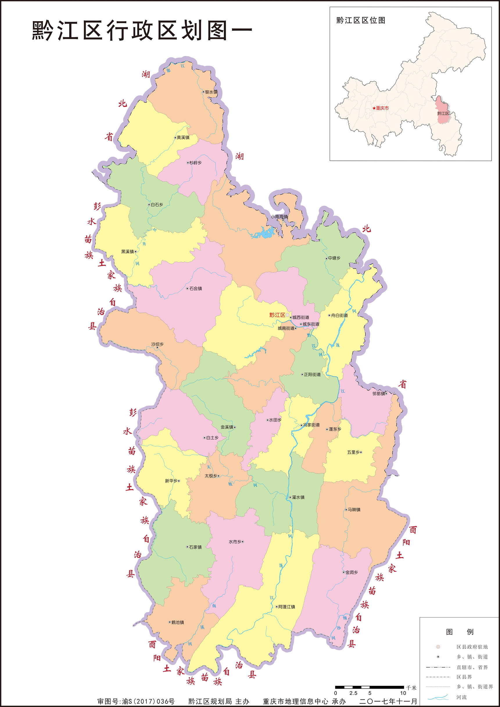 黔江區(qū)轄6個(gè)街道、18個(gè)鎮(zhèn)、6個(gè)鄉(xiāng):