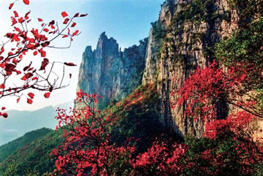 景區(qū)內(nèi)有集中連片紅葉6700公頃,有以黃櫨、烏桕、楓樹和桐樹為主的200個品種。紅葉植物主要生長在樹木少、土質(zhì)薄的地方,具有耐寒、耐干旱的特性,早晚溫差越大,天氣越冷紅葉越紅。深秋時節(jié),廣袤的群山峽谷中,70%的山體上都被成片的紅色覆蓋,與碧綠的峽江水交相輝映。