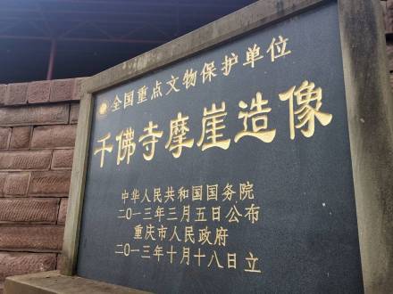 千佛寺摩崖石刻造像,因崖壁上開鑿有很多佛像而得名,共有43龕,各類造像311身,題記31則,開鑿年代到可從元明追溯到中唐,以晚唐、北宋時(shí)期造像為主。千佛寺摩崖石刻已于2013年3月5日,列入第七批全國重點(diǎn)文物保護(hù)單位(并入潼南大佛寺摩崖造像)。