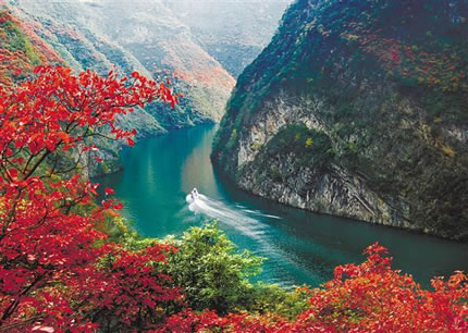 巫山的氣溫給紅葉創(chuàng)造最佳生長(zhǎng)和形成時(shí)機(jī)。三峽庫(kù)區(qū)蓄水達(dá)到170.9米,江、山、紅葉三位一體,高峽平湖與漫山紅葉交相輝映。巫山紅葉集中連片有6700公頃,其中以小三峽的巴霧峽最為集中。秋季漫山紅葉,層林盡染,游客既可乘車上山,隨公路盤旋觀賞紅葉景觀,亦可坐船仰望兩岸紅葉,還可以徒步林中小道近距離觀賞紅葉。