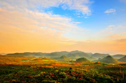 川河蓋草場(chǎng)旅游區(qū)平均海拔950米,全年平均氣溫12.1攝氏度,森林覆蓋率43%。游資源極其豐富,“春看映山紅遍、夏可乘涼避暑、秋觀芭毛秋雪、冬賞北國(guó)風(fēng)情”。依托天然的四季植被景觀,獨(dú)具特色的石頭茅草建筑,開闊的坪壩地形,可以開展豐富多彩的親近自然、回歸自然的活動(dòng)。主要以生態(tài)觀光,回歸自然為主要功能。景點(diǎn)及節(jié)目:映山紅(杜鵑花)節(jié)、植物科考、溶洞探險(xiǎn)、公路景觀、秋冬賞雪景、高山狩獵及騎射。