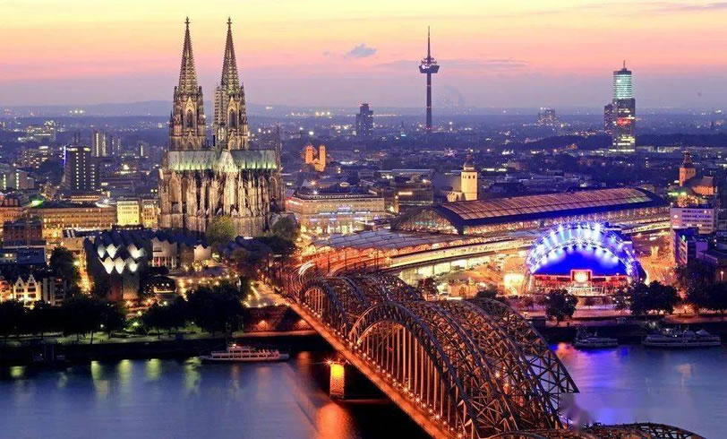 科隆 科隆市(Köln/Cologne)是德國的第四大城市,人口100.7萬,面積405平方公里,僅次于柏林、漢堡和慕尼黑,是一座大都市,市中高樓大廈鱗次櫛比,是一個繁華的商業(yè)城市,也是德國西部萊茵河畔歷史文化名城和重工業(yè)城市。 一譯“科倫”。公元前38年建為古羅馬要塞。曾是漢薩同盟主要成員。因位居歐洲東西和南北交通要沖,中世紀時經(jīng)濟已頗發(fā)達。十九世紀中葉后,隨魯爾煤田開發(fā)和鐵路修筑,發(fā)展更迅速。巨大水陸交通樞紐,重要的河港?坡-波恩航空站位于東南郊,市內(nèi)有通往布魯塞爾、波恩等地的直升飛機場。工業(yè)有軍工、冶金、機械、化學(xué)、制藥、煉油、紡織、食品等部門。全國重要褐煤產(chǎn)地之一,建有大火電站。全國金融中心之一。第二次世界大戰(zhàn)時遭嚴重破壞。多古跡,如著名科隆大教堂(圓頂上的兩塔尖高達161米)、羅馬時代地下廣場等。馬克思和恩格斯曾在此創(chuàng)辦《新萊茵報》。 科隆還是一個以羅馬式教堂和哥特式大教堂聞名于世的城市。屹立在萊茵河邊的科隆大教堂高157.31米,它有兩座哥特式尖塔,北塔高157.38米,南塔高157.31米。科隆大教堂是世界上最高的雙塔教堂,它已成為科隆市的象征和游客們向往的名勝之地。站在高高的塔頂極目遠望,萊茵河猶如一條白色的緞帶從旁飄過。