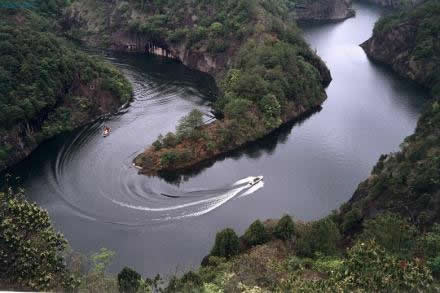 冠豸山東南有石門湖,潭深壑淺,湖清山秀,酷似一塊翡翠鑲嵌在冠豸山的奇峰險壑之中。登艇游覽,山環(huán)水繞,沿途可欣賞“渴馬飲泉”、“大象戲水”、“猴猻撞鐘”、“三姐妹石”、“瘋僧戴帽”等勝景。