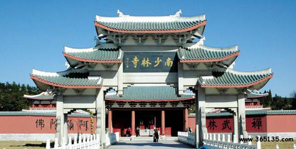 莆田南少林在福建省莆田市荔城區(qū)西天尾鎮(zhèn)北部層巒疊嶂,聞名天下的南少林寺就在這里。莆田南少林寺原名林泉院,據(jù)考古認(rèn)為“林泉院至遲在唐代或唐末即已存在”,但具體創(chuàng)建年代有待進(jìn)一步考證。林泉院的習(xí)武之風(fēng),緣起于唐初,它的經(jīng)磨歷劫,也與武風(fēng)有關(guān)。傳說,李世民登基后,輔公祏部將路得才聚眾東南沿海為非作歹,鬧得民不聊生。那些歹徒行蹤不定,聚散無(wú)常,如果派大軍圍剿,無(wú)異用拳頭打跳蚤,勞民傷財(cái),且難奏效。唐太宗只好把已封為大將軍的少林寺方丈曇宗找來,請(qǐng)他派武藝高強(qiáng)的僧兵懲治海盜。曇宗派十三棍僧之一的道廣帶領(lǐng)五百僧兵入閩平暴。暴亂平息后,沿海人民挽留這些救苦救難的活菩薩。道廣也感到盛情難卻,就回到嵩山少林寺稟告曇宗方丈。方丈當(dāng)即道出一偈:“傍海平盜日月久,九蓮山下有宿頭。南北千里同一寺,大乘禪在心中留。”道廣根據(jù)北少林方丈的偈語(yǔ),找到了當(dāng)時(shí)就有名氣,且地形酷似嵩山的林泉院擴(kuò)寺定居。林泉院也就成為江南的少林分寺。該寺所在的林山村周圍有九座山圍成一圈,形如九瓣蓮花,寺院坐落在花心的位置上,因名九蓮山少林寺,俗稱南少林。清朝初年,各地抗清志士、武林俊彥紛紛來到具有習(xí)武傳統(tǒng)的南少林,把它作為反清復(fù)明的基地。由于叛徒的出賣,南少林被官軍攻陷,僧眾多被殺戮,寺院被夷為平地。沖出火海的武僧流落江湖,傳徒授藝,堅(jiān)持抗清斗爭(zhēng)。據(jù)傳,南拳的不少套路出自南少林。由于清廷的輿論封鎖,這一段歷史鮮為人知,只是在民間悄悄流傳。