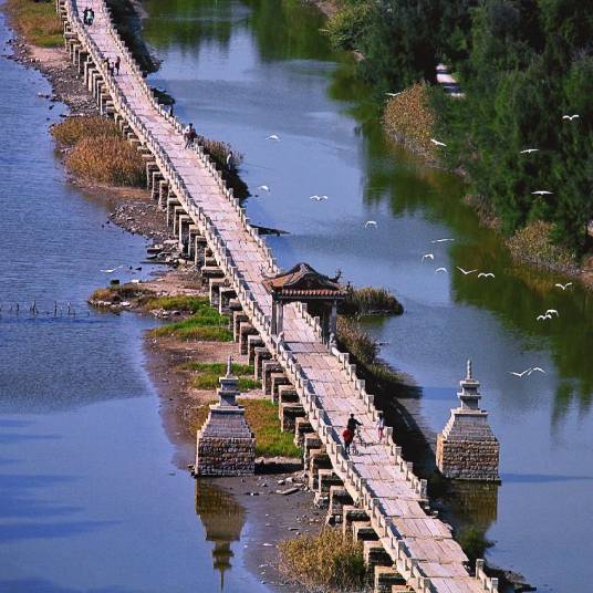 安平橋,曾用名五里橋、西橋、安海橋,是中國(guó)福建省泉州市境內(nèi)連接晉江市和南安市的一座橋梁,是世界上中古時(shí)代最長(zhǎng)的梁式石橋,也是中國(guó)現(xiàn)存最長(zhǎng)的海港大石橋,是古代橋梁建筑的杰作,享有“天下無(wú)橋長(zhǎng)此橋”之譽(yù)。