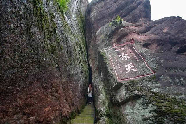 著名旅行家徐霞客于明崇禎三年(1630年)記敘了這一奇觀:“上辟山巔,遠(yuǎn)透山北,中不能容肩,蓋之乃受,累級(jí)斜上,直貫其中。余所見‘一線天’數(shù)處,武夷、黃山、浮蓋,未曾見若此之大而逼、遠(yuǎn)而整者”。每當(dāng)午時(shí),晴空麗日,陽光直射,翹首仰望,只見天光一線,壯麗無比。