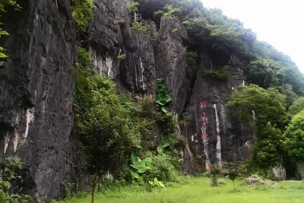 徐霞客曾游覽過此洞,在游記中寫道:“有飛橋架兩崖,上下壁前,懸空而度,峰攢石裂,岈然成洞”。
