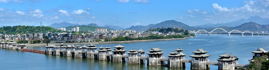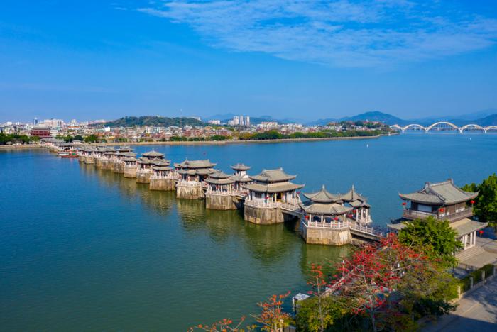 廣濟(jì)橋,即潮州廣濟(jì)橋,古稱康濟(jì)橋、丁侯橋、濟(jì)川橋,俗稱湘子橋,又稱潮州湘子橋,中國(guó)四大古橋之一,中國(guó)四大名橋之一 [16],被橋梁專家茅以升譽(yù)為“世界上最早的啟閉式橋梁”。廣濟(jì)橋位于廣東省潮州古城東門外,橫跨韓江,聯(lián)結(jié)東西兩岸,集梁橋、浮橋、拱橋于一體,為古代廣東通向閩浙交通要津,是潮州八景之一,是潮州文化的歷史地標(biāo)、全國(guó)重點(diǎn)文物保護(hù)單位,國(guó)家AAAA級(jí)景區(qū)。