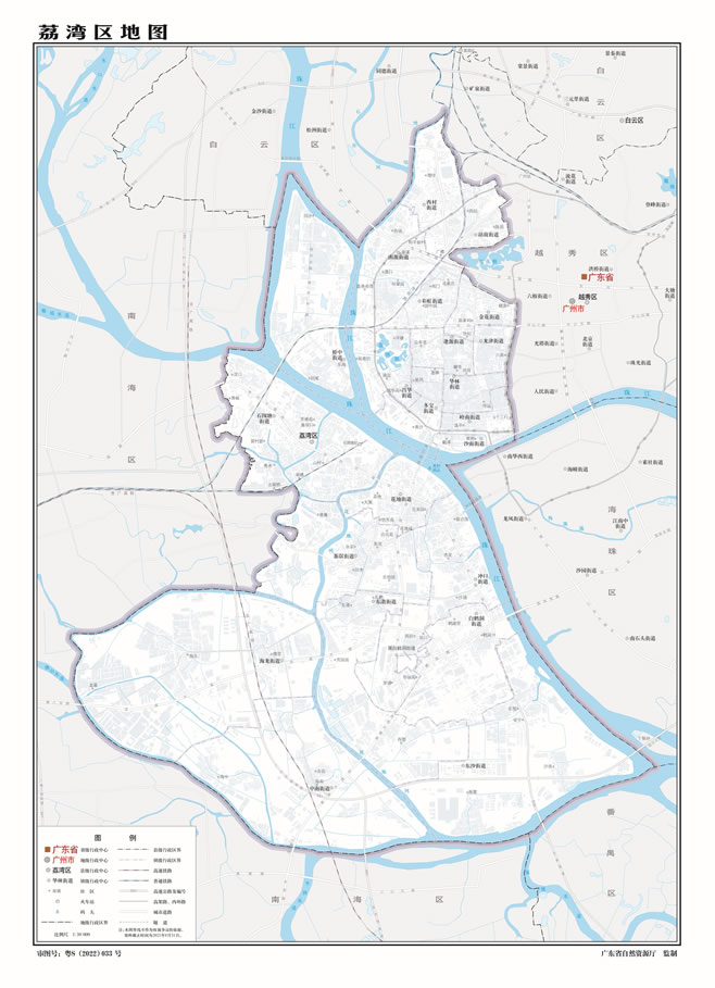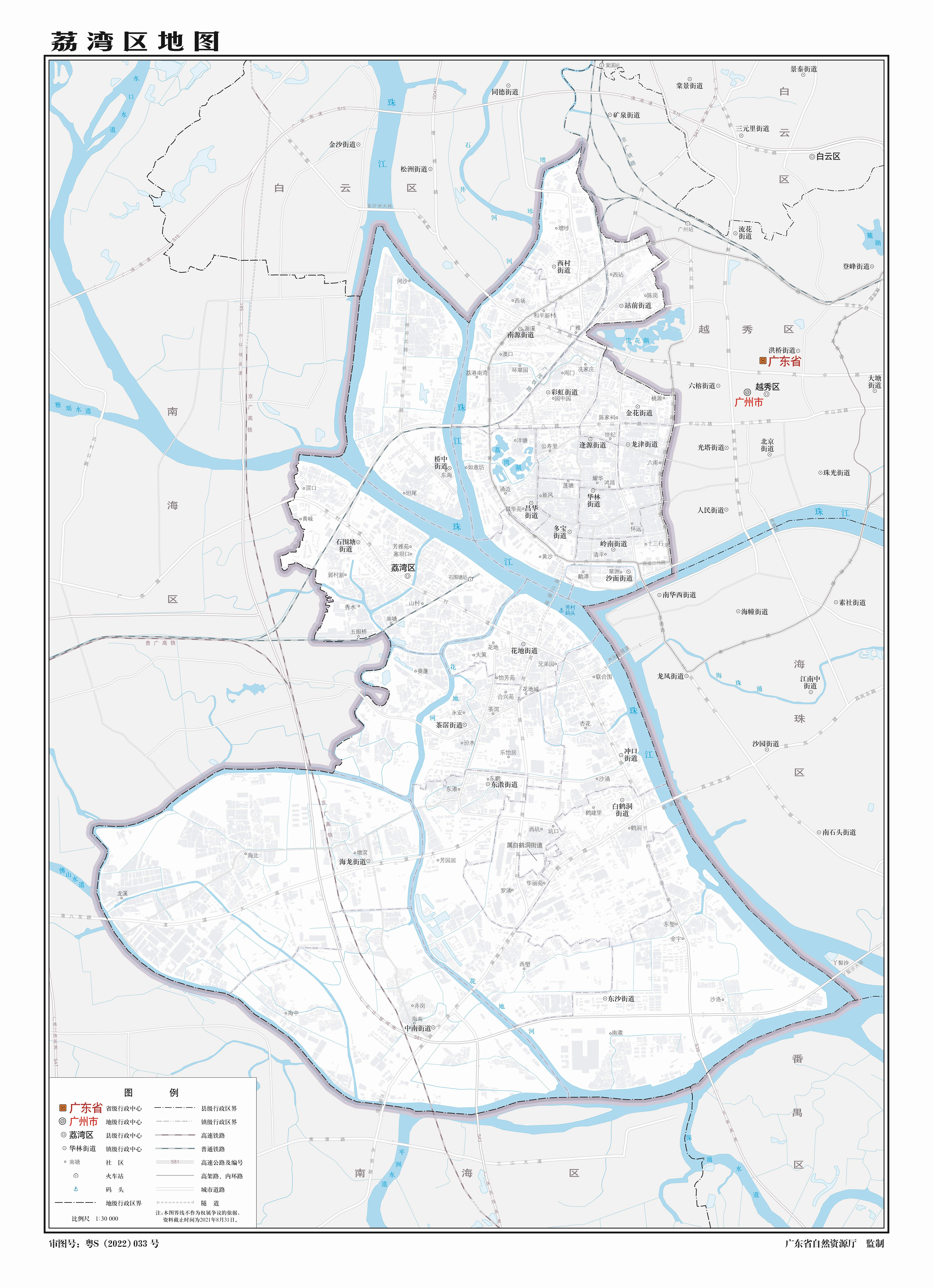 荔灣區(qū)轄22個(gè)街道:沙面街道、嶺南街道、華林街道、多寶街道、昌華街道、逢源街道、龍津街道、金花街道、彩虹街道、南源街道、西村街道、站前街道、橋中街道、白鶴洞街道、沖口街道、花地街道、石圍塘街道、茶滘街道、東漖街道、海龍街道、東沙街道、中南街道