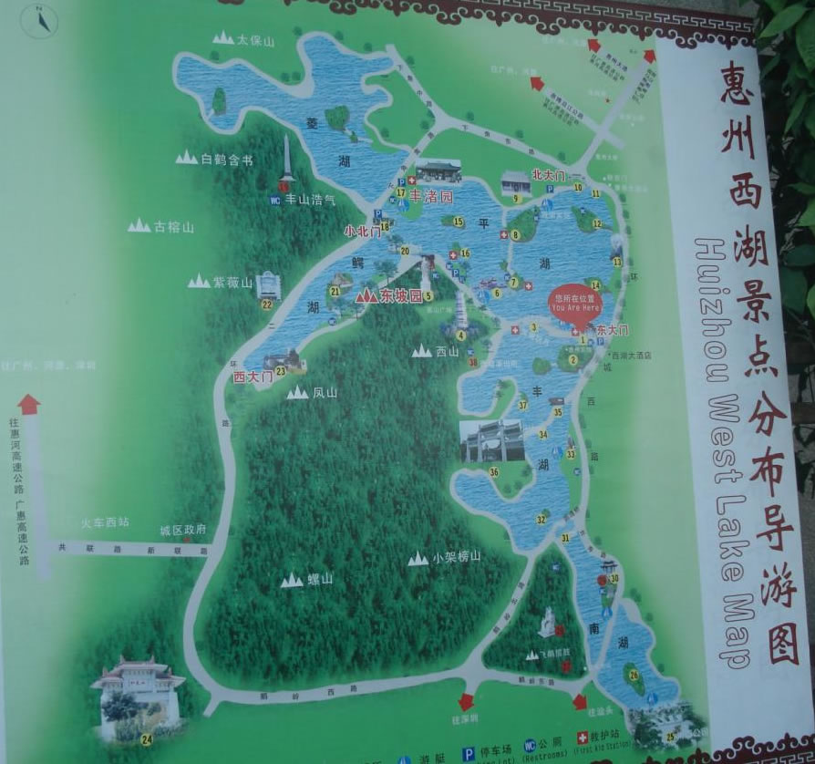 其山川秀邃、幽勝曲折、浮洲四起、青山似黛,古色古香的亭臺(tái)樓閣隱現(xiàn)于樹木蔥蘢之中,景域妙在天成,有“苧蘿西子”、“嶺南明珠”之美譽(yù),并有“大中國(guó)西湖三十六,唯惠州足并杭州” 的史載。歷代以蘇東坡、李商隱、楊萬里、祝枝山、陳堯佐、白玉蟾、梁鼎芬、丘逢甲為代表的400多位文人墨客曾踏足惠州,為西湖留下了寶貴的文化遺產(chǎn);近代孫中山、周恩來等領(lǐng)導(dǎo)人在惠州從事過革命運(yùn)動(dòng),在西湖留下了光輝的足跡。這些歷史古跡和革命勝跡與西湖的青山秀水融為一體,相得益彰。
