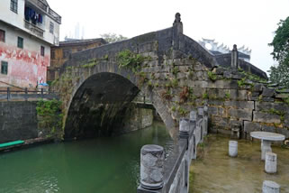 石板路旁的房子多為青磚、青瓦的兩層明清建筑,歷史滄桑隨處可見。每棟房子設(shè)計(jì)十分合理,集商住于一身,均由門前、天井、正房、廂房、后院組成?拷值囊话阕麂伱鎻氖律虡I(yè),有樓梯可上二層。往里走是天井,一般都栽有花草,利于采光;天井后是正房,高大寬敞,供著神像及祖宗牌位,是主人活動(dòng)、會(huì)客的地方;兩邊是用來居住的廂房。正房、廂房的門窗上都雕有花紋;正房后有門可到后院,后院臨江并建廚房和廁所,有石階可到江邊取水、洗衣。到大圩,萬壽橋是必去的地方。萬壽橋詩建于明代,是一座石塊砌起的石拱橋,橋面的石頭已被磨得溜光發(fā)亮,間雜些許小草,古樸自然。橋的西面是漓江,是欣賞漓江及對(duì)岸螺螄山的極佳位置。
