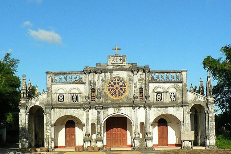羅浮恒望天主教堂距離市中心約5公里,由法國傳教士建于1832年,歷史悠久。當時的羅浮天主教堂屬北海教區(qū)。初建時教堂占地10000余平方米,設有教堂、鐘樓、育嬰室(收養(yǎng)棄嬰)、男校、仁愛堂、圣堂、織紡堂等。由于歷經(jīng)歲月的沖刷、歷次政治風暴的滌蕩以及人口不斷增加的影響,如今的羅浮天主教堂只剩幾百米的范圍內(nèi)。羅浮天主教堂是東興所有的三個教堂中最為典型的法式建筑。教堂正面及兩側(cè)由十幾根柱子托起,形成大半框形的走廊。每根柱子之間都砌成拱形的門的形狀,相互承接。每根柱子的上方都修成如鐘樓的樣式,并努力地讓它接近天空。