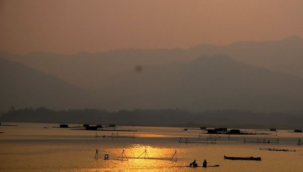 西湖三面臨山,東有高聳云際的白云山;西有惟妙惟肖的雞籠山;南有象山橫截江流,氣勢(shì)雄渾,視野開(kāi)闊。湖區(qū)景物,依時(shí)而變,氣象萬(wàn)千。春泉傾瀉,珠玉飛灑;夏雨新霽,青山如洗;秋收時(shí)節(jié),魚(yú)翔簇簇,汽艇竹筏,去來(lái)繁忙;冬日白雪,或蓋山頂,或掛枝頭。