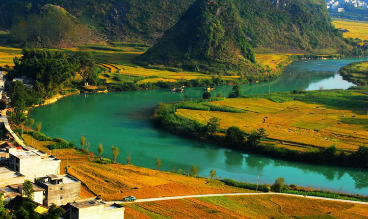 甲篆村在巴馬縣西北19千米處,甲篆鄉(xiāng)政府駐地,巴馬至鳳山公路經(jīng)此,盤陽河從距村址約2千米烈屯漠齋山的百鳥洞奔流而出,河灣斷續(xù),秀水瀠洄,兩岸奇峰峻巒,村屯錯落。甲篆村美景曾令到此探索壽鄉(xiāng)之秘的國外專家考察隊和區(qū)內(nèi)外到此體驗生活的文藝家們嘆為觀止,因而素享“小桂林”之美稱。坡開村還盛產(chǎn)油魚,這種體肥肉嫩身骨細軟,煎時香油四溢。