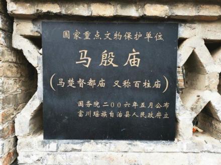 馬殷廟位于賀州市富川瑤族自治縣朝東鎮(zhèn)福溪村,始建于明代永樂十一年(1413年),廟內(nèi)的設計排列十分有序,分為明間、正間、次間、稍間,兩邊都各設廂房,是目前在南方瑤族地區(qū)年代最早、規(guī)模最大、保存得最完整、構件帶有較多宋式風格的木結構古建筑。2006年5月25日,馬殷廟被中華人民共和國國務院公布為第六批全國重點文物保護單位。