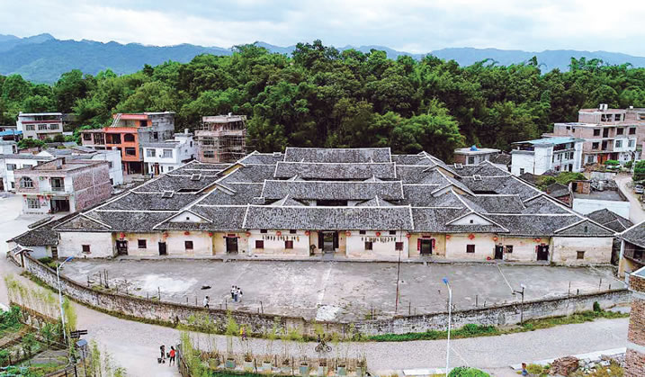 賀州江氏客家圍屋,位于廣西賀州市八步區(qū)蓮塘鎮(zhèn)仁沖村,建于清代,已有200多年歷史。圍屋建筑為方形對稱結(jié)構(gòu),四周有3米高墻與外界相隔,屋宇、廳堂、房井布局合理,廳與廊相通,廊與房相接,錯(cuò)落有致。屋檐、回廊、屏風(fēng)、梁柱等設(shè)計(jì)精致,有典型的客家建筑文化藝術(shù)風(fēng)格。 2019年,入選第八批全國重點(diǎn)文物保護(hù)單位。