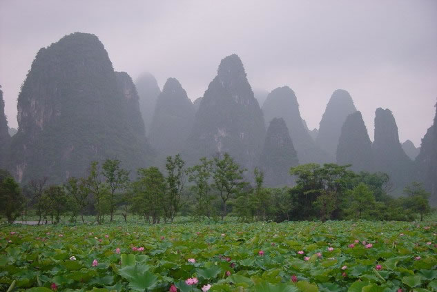 十里畫廊景區(qū)位于縣城西北18千米,國道323線及桂梧高速公路旁,以公安鎮(zhèn)荷塘村為中心,面積約36平方千米。景觀有荷塘群峰、雙元群峰、公婆山、陽元石(朝天蠟燭)、觀音山、寶塔山等。景區(qū)延綿十數(shù)里,風景如畫,因而取名為十里畫廊。 廣西賀州市鐘山縣的“公婆山”位于十里畫廊景區(qū)內,屬喀斯特巖溶地貌峰林平原區(qū)域。“公婆山”是一座天然形成的“人”字形小石山,此山高約30余米、底寬10多米,呈三角形尖頂狀,極像一男一女面對面站立相擁在一起。當?shù)亓鱾髦粋小伙子金水與仙女巧蘭千古不朽的愛情故事,公婆山就是他們的化身。
