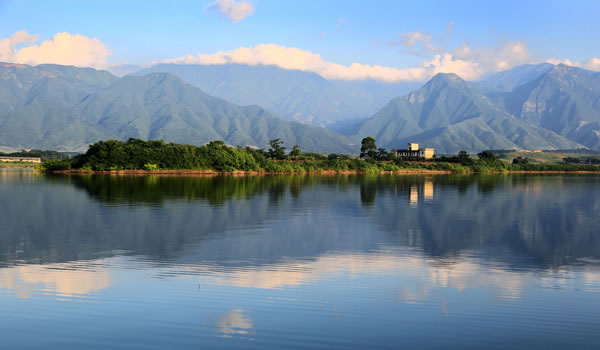 富川碧溪湖是1958年新建的龜石水庫。碧溪湖東西長20多千米、南北寬10多千米,大部分水深二三十米,無風(fēng)的日子,水浪也有半米高。