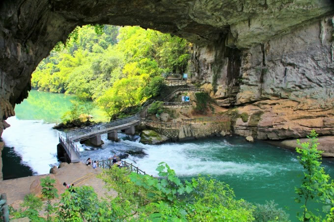 天生橋橋洞拱高35米,橋面長(zhǎng)寬度各40米。這里有一個(gè)美麗動(dòng)人的傳說,以前這里沒有橋,過河極為不便,遠(yuǎn)在洛陽的魯班師傅知道后,揮動(dòng)他手中的板斧一揮而就,當(dāng)?shù)氐睦习傩諡楦兄x他,就送了三顆香桃給他,當(dāng)時(shí)正值陽春三月,桃紅柳綠,魯班師傅就把此橋稱之為“香橋”。