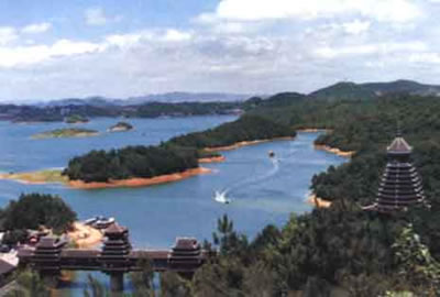 貴州國家級(jí)風(fēng)景名勝區(qū)之一的紅楓湖風(fēng)景名勝區(qū)是連貴州本地人都十分愛去游覽的地方,它不僅僅因它的湖泊面積大更因它的湖上星羅棋步的小島而吸引著本地的外地的游客。它的水域總面積為57.2平方公里,蓄水量可達(dá)6億立方米,為貴州高原人造湖之最,據(jù)專家考證出來的數(shù)據(jù)顯示,紅楓湖比北京的十三陵水庫大12倍,相當(dāng)于6個(gè)杭州西湖。