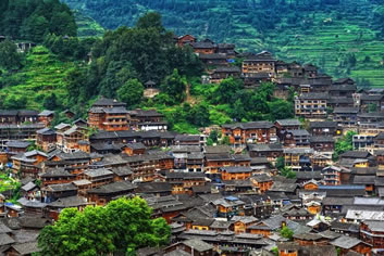 西江千戶苗寨,位于貴州省黔東南苗族侗族自治州雷山縣西江鎮(zhèn)南貴村,距雷山縣城36千米,距黔東南州州府33千米,由十余個依山而建的自然村寨相連成片,全寨原住居民有1400多戶,6000多人,其中99.5%為苗族,是全國也是全世界最大的苗寨。四面環(huán)山,重連疊嶂,梯田依山順勢直連云天,白水河穿寨而過,將西江苗寨一分為二。