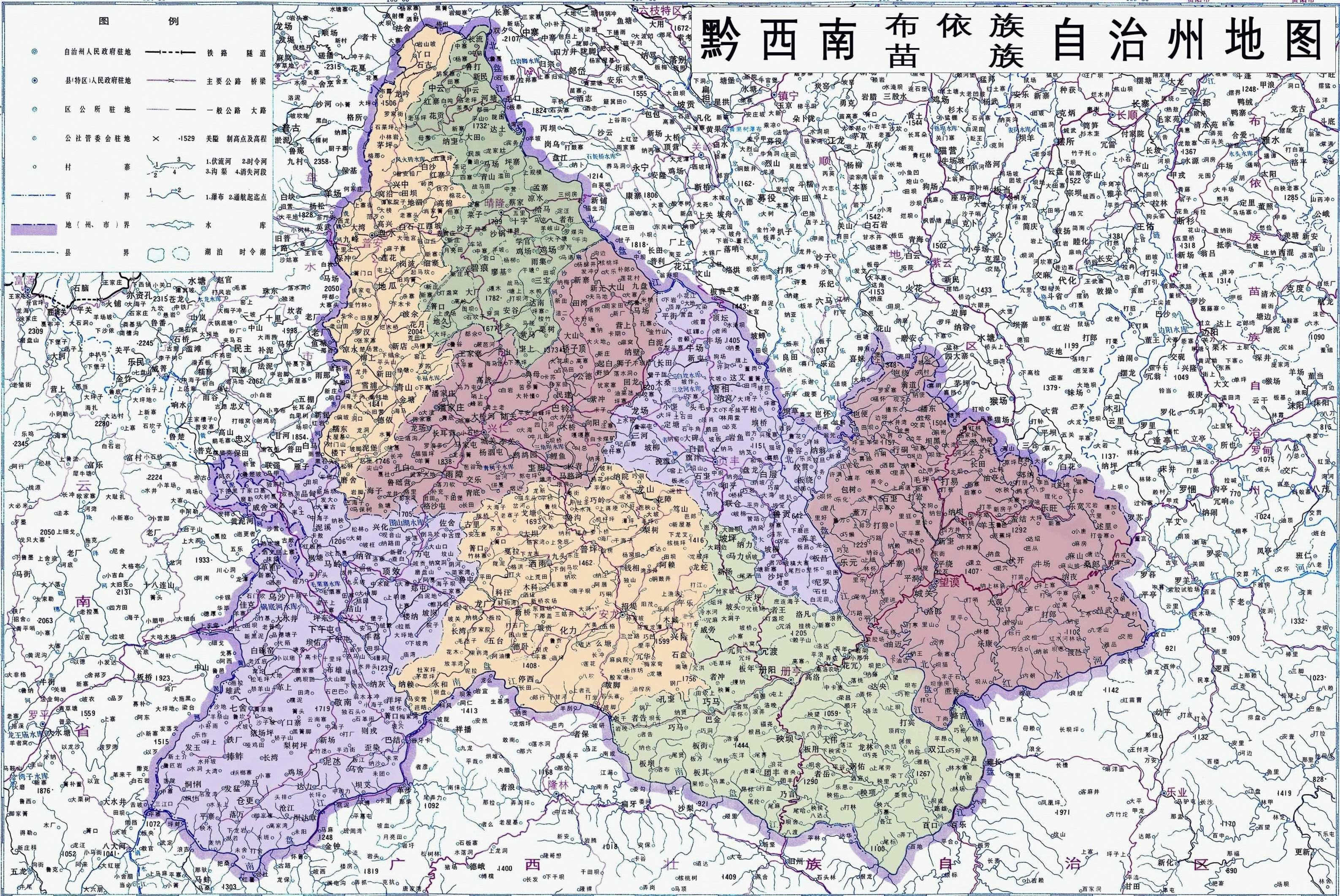 黔西南布依族苗族自治州轄2個(gè)縣級(jí)市、6個(gè)縣: