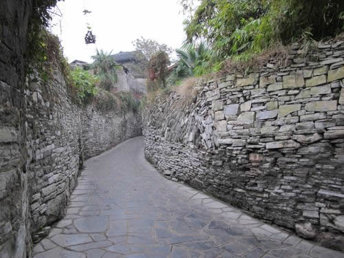 院落:青巖古鎮(zhèn)大戶人家的院落并不十分闊綽,一般是三合院,有小朝門、石院壩、花壇、石凳、小軒窗,簡(jiǎn)樸、寧?kù)o而有書香氣。小巷住著尋常百姓人家,巷子兩邊的墻多用毛石堆砌或用土筑,墻上布滿綠草、青苔,偶爾伸出幾枝花果,恬淡而有山野味,顯得年代相當(dāng)久遠(yuǎn)。