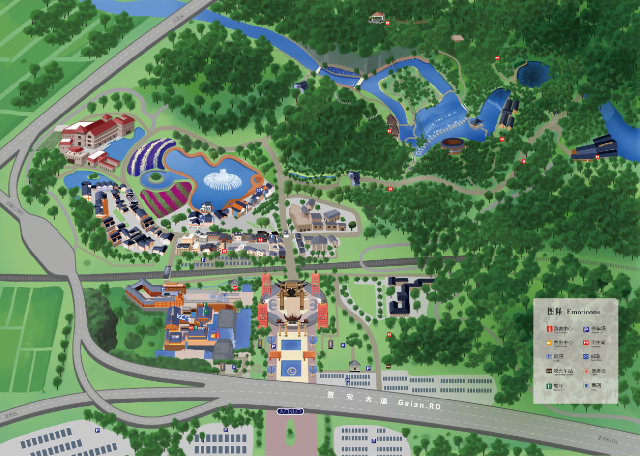 里面包含售票大廳、指揮中心、多功能會議室、員工食堂、辦公區(qū)、景區(qū)文化展示廳、自營餐廳、旅游商品購物區(qū)。