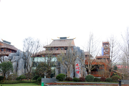 游客服務(wù)中心,占地面積3萬平方米,同樣以民族元素為特色建造。它臨近主出入口和停車場,是游客到達(dá)天河潭第一站。